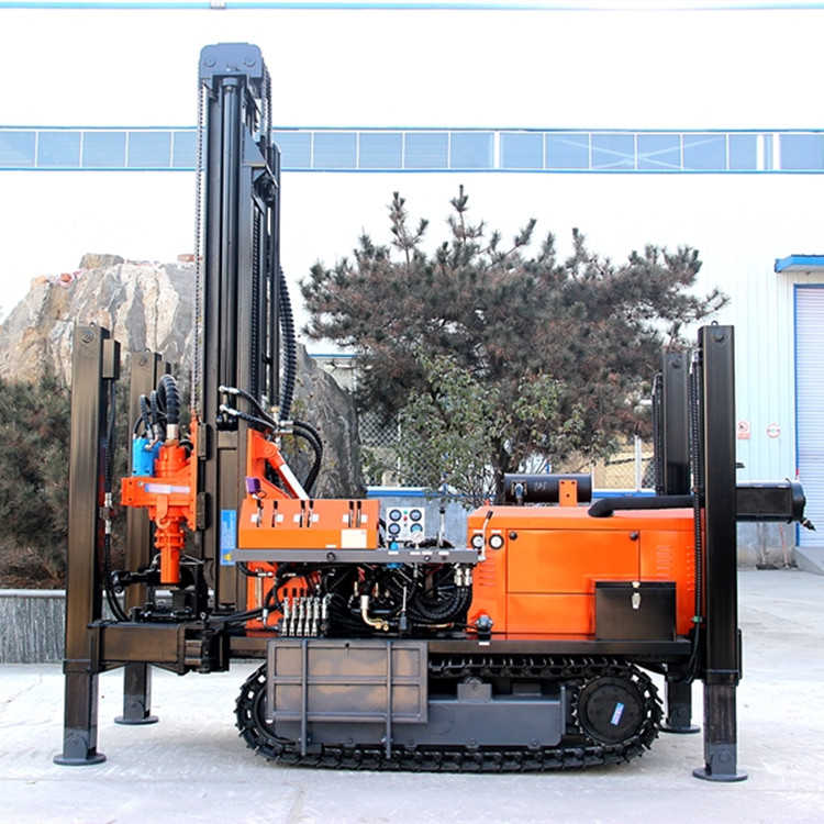 1.The DM series water well drilling rig is a light, efficient, and versatile drilling equipment. It is mainly used for drilling water wells, agricultural wells, geothermal air conditioning holes, and other types of boreholes, especially suitable for water engineering in mountainous areas and rock strata. Travel device: The travel motor equipped with a reduction box, durable and long-lasting; Hydraulic oil pump; the parallel transmission design separates the oil pump unit, ensuring sufficient power supply and distribution, the hydraulic system is uniquely designed, and maintenance is simple and inexpensive; Power head device; the transmission case is cast as one piece, and the double motor provides power with large torque, durable, and low maintenance cost; Drilling rig chassis; professional excavator chassis, durable, large load-bearing capacity, wide chain plate, and little to hard road surfaces; Lifting force; a composite boom is used in the design, the boom volume is small, the stroke is long, and the double cylinder lifts, a large lifting tonnage; Each drilling rig lifting boom is equipped with a limit switch to protect the cylinder safety and ensure work safety; Each hydraulic hose is wrapped with protective sheath to extend the life of the hose.
